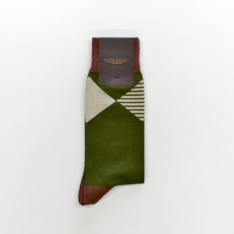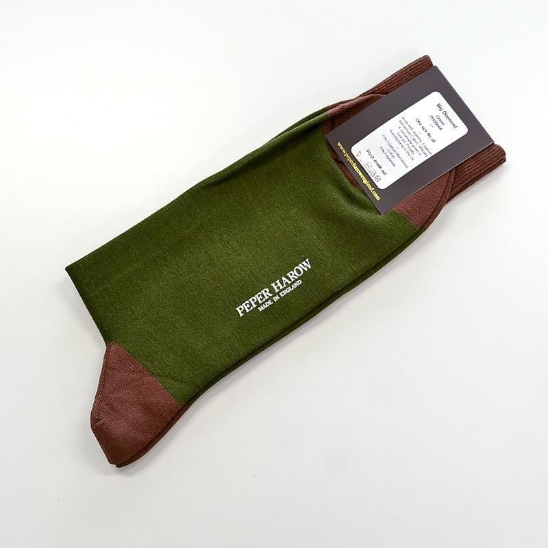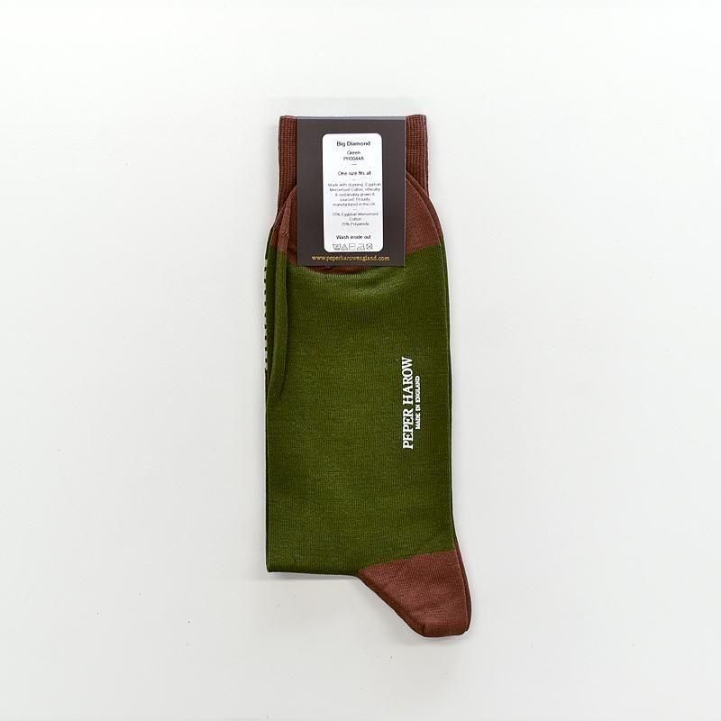 オリーブグリーンとブラウンの組み合わせがクラシックなビッグダイヤモンド柄。