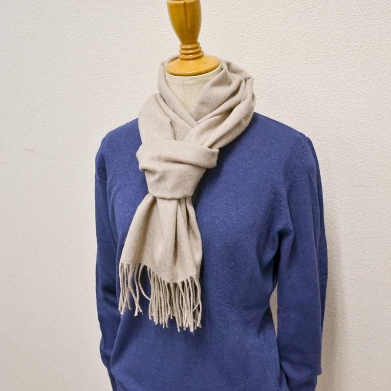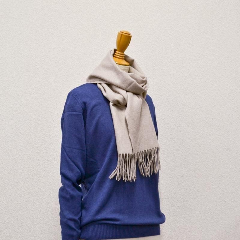ラグジュアリーなファインメリノウール100%で驚くほど柔らかな肌触りのマフラー。